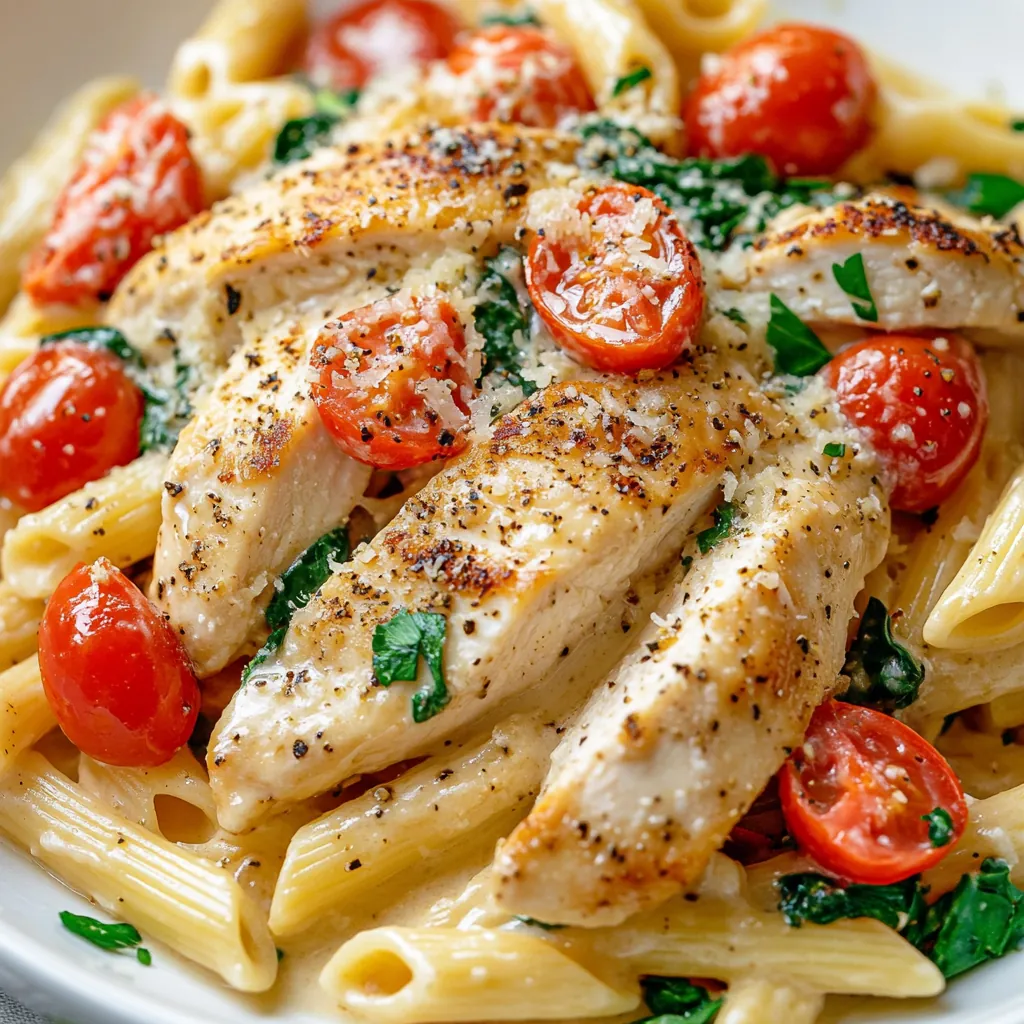 This One Pan Creamy Tomato Chicken Pasta is a cozy, weeknight-friendly dinner where tender seared chicken, al dente penne, and a silky tomato-cream sauce all come together in a single …