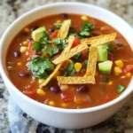 Keywords: 5 ingredient tortilla soup, slow cooker tortilla soup, vegetarian tortilla soup, easy crockpot soup, black bean tortilla soup
