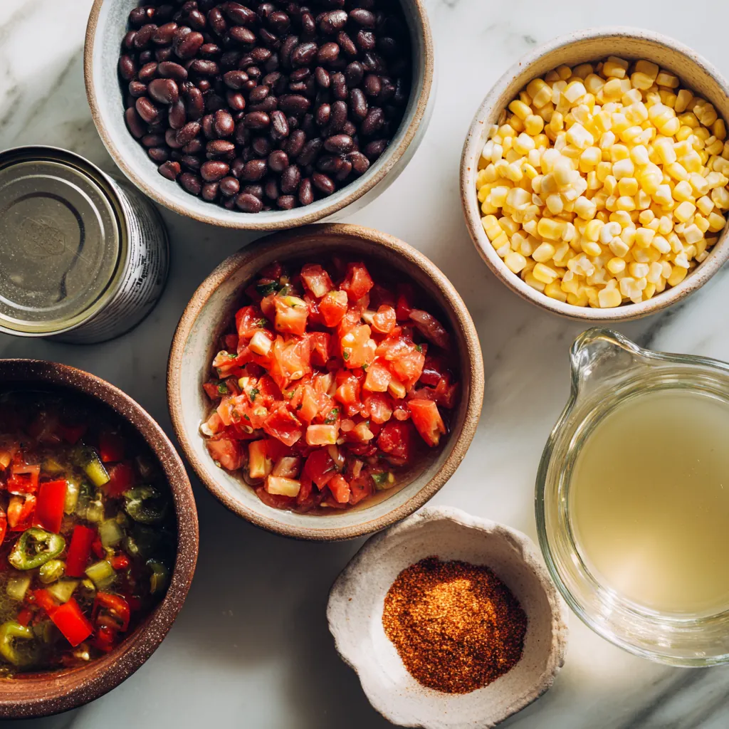 5 Ingredient Slow Cooker Tortilla Soup proves that you don’t need a long ingredient list to get big, bold flavor. Black beans, tomatoes with green chilies, sweet corn, and broth simmer together with taco seasoning into a cozy, Tex-Mex–inspired soup. Just toss everything in the slow cooker, let it bubble away, then finish with your favorite toppings for an easy, satisfying meal.