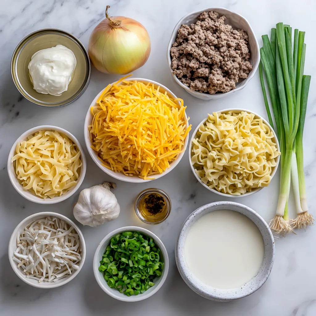 This Beef and Sour Cream Noodle Casserole is pure cozy comfort in a baking dish. Tender egg noodles are folded into a rich, creamy sauce studded with savory ground beef, onions, and cheddar cheese. Baked until golden and bubbly, then finished with fresh green onions, it’s the kind of family-friendly weeknight dinner that feels nostalgic, satisfying, and irresistibly creamy every time.