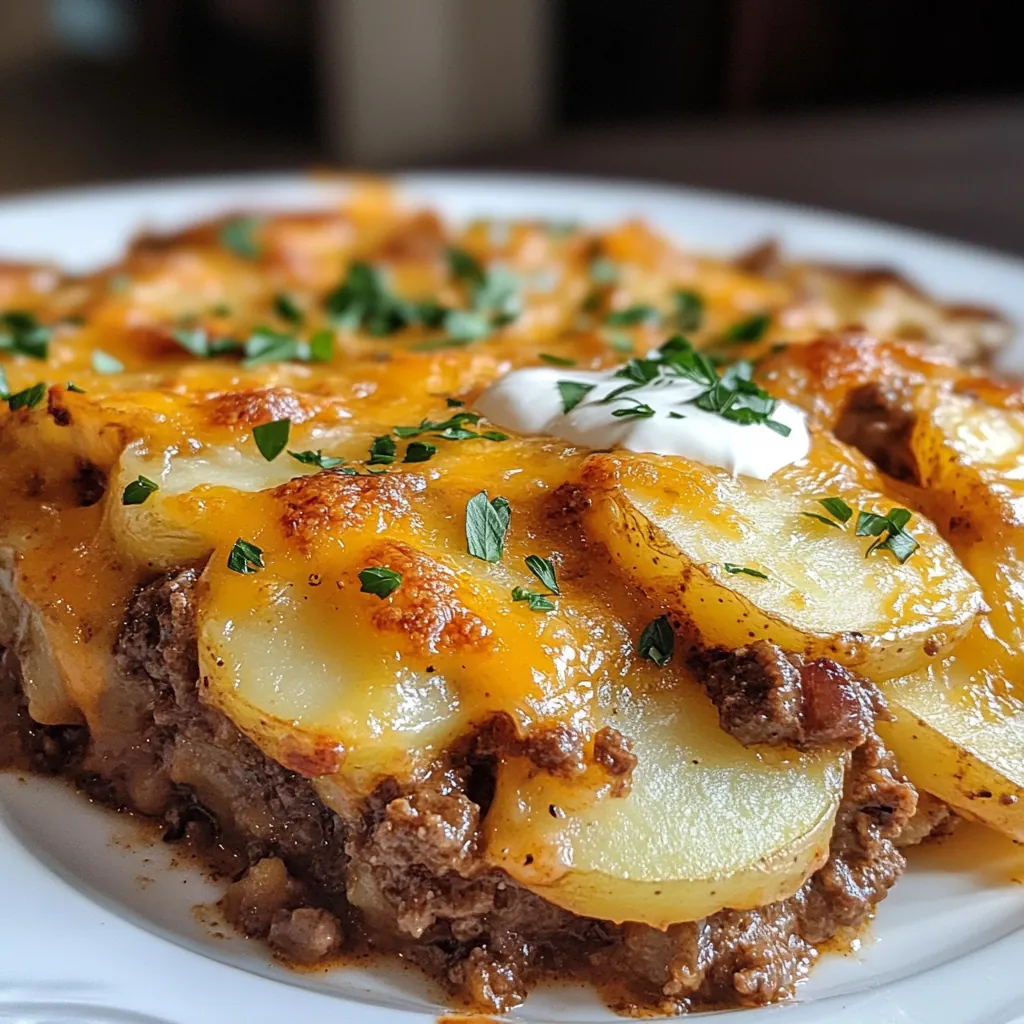 Cozy, hearty, and loaded with flavor, this layered bake stacks tender potatoes, seasoned ground beef, tangy sour cream, and melty cheddar into a bubbly, golden casserole. It’s simple comfort food …