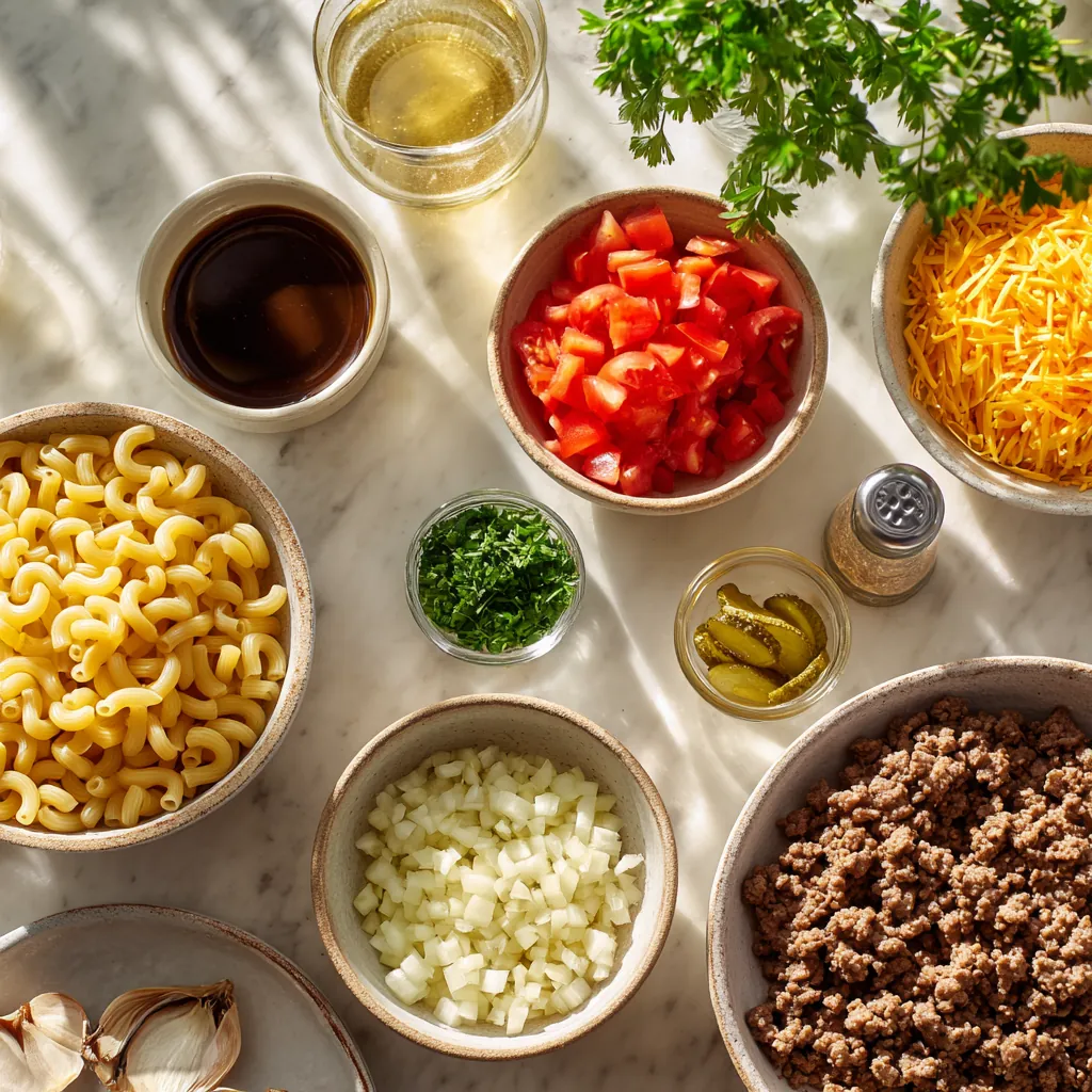 This Cheeseburger Casserole turns all the flavors of a classic cheeseburger into a cozy, family-style bake. Tender elbow macaroni, seasoned ground beef, and melty cheddar come together in a rich, savory sauce, with optional pickles for that signature burger tang. It’s a hearty, weeknight-friendly dish that’s guaranteed to be a crowd-pleaser.