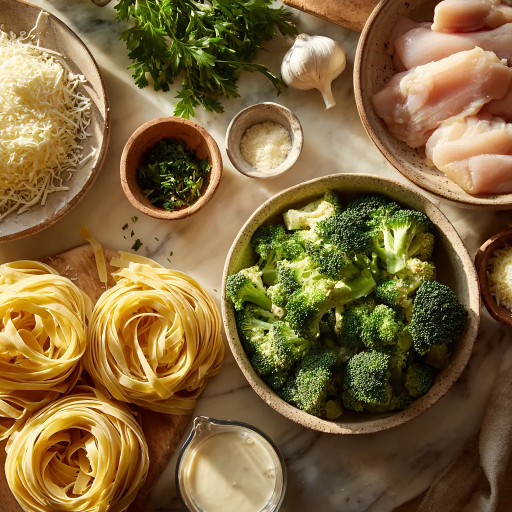 Keywords: chicken and broccoli alfredo, creamy chicken pasta, easy weeknight dinner, fettuccine alfredo with chicken, one pan pasta