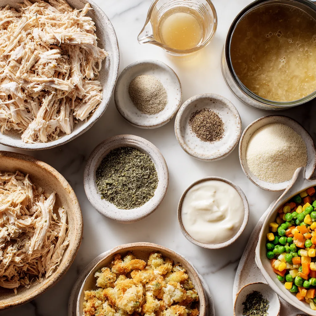 This cozy Chicken and Stuffing Casserole is the ultimate comfort food: tender shredded chicken in a creamy, savory sauce, topped with buttery, golden stuffing. It’s an easy weeknight bake that uses simple pantry ingredients and frozen veggies for a complete, family-friendly meal in one dish.