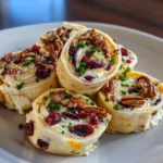 Keywords: cranberry orange pinwheels, cream cheese pinwheels, holiday appetizers, no-bake snacks, festive finger foods, party platter recipes