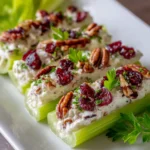 These Cranberry Pecan Cream Cheese Stuffed Celery “Snow Logs” bring together everything we love about holiday treats color, crunch, creaminess, and a festive flair while staying incredibly simple to prepare. Whether you’re setting the stage for a winter feast or just adding a touch of seasonal joy to your snack plate, these delightful nibbles are guaranteed to charm every guest and brighten every table. Enjoy the cheerful crunch!