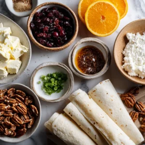 These Cranberry-Pecan Pinwheels are a festive, colorful, and irresistibly creamy appetizer perfect for any holiday spread or party platter. Each bite combines tangy cream cheese, sweet cranberries, crunchy pecans, and a bright hint of orange zest—all wrapped up in a soft flour tortilla. With no cooking required and a quick prep time, these pinwheels are as easy to make as they are to enjoy!