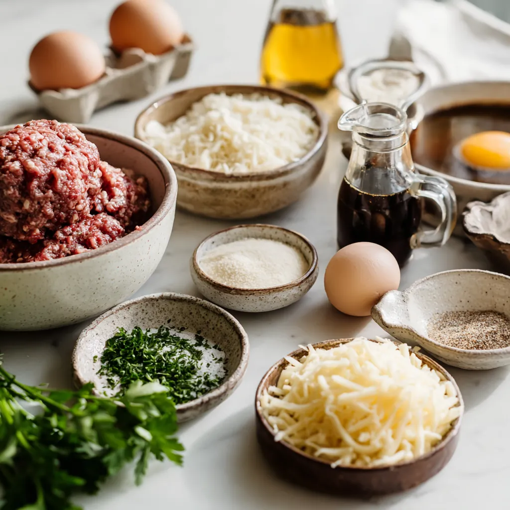 - In a large bowl, combine ground beef, French onion soup, breadcrumbs, egg, Worcestershire sauce, garlic powder, onion powder, salt, and pepper. Mix until just combined.