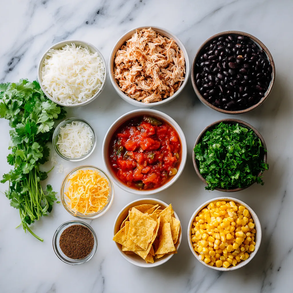 - 2–3 cups tortilla chips, lightly crushed, for topping