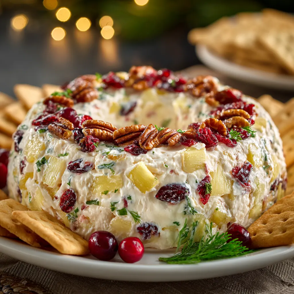 Keywords: holiday cheese ring, pineapple cranberry dip, festive appetizer, Christmas cheese ring