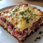 This Homemade Reuben Bake turns all the flavors of a classic deli Reuben sandwich into an easy, cozy casserole. With layers of tangy sauerkraut, savory corned beef, nutty Swiss, and hearty rye bread soaked in a creamy Thousand Island custard, it bakes up golden, toasty, and irresistibly cheesy perfect for brunch, game day, or a comforting weeknight dinner.