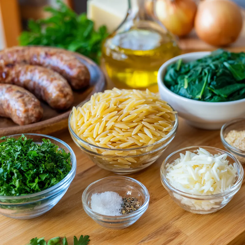 Keywords: Italian sausage orzo, one-pot pasta, spinach orzo, creamy orzo, sausage pasta