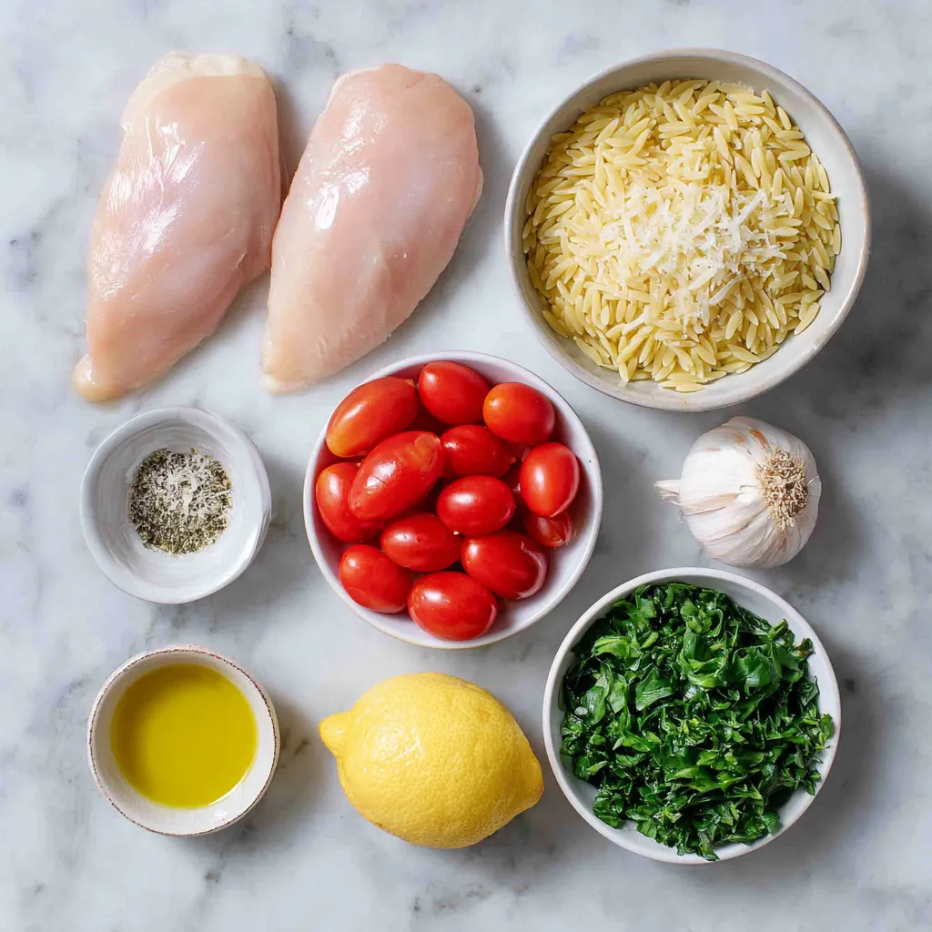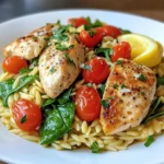 Keywords: lemon chicken orzo, one-pan pasta, skillet dinner, easy weeknight meal, lemon garlic chicken, orzo with spinach and tomatoes