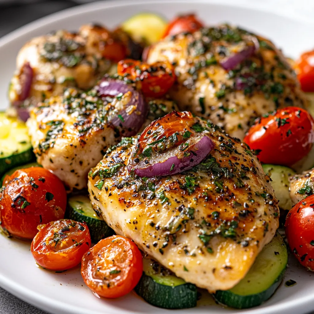 This Mediterranean Baked Chicken brings together tender herb-marinated chicken and a colorful medley of roasted vegetables. Each bite bursts with bright lemon, fragrant herbs, and natural veggie sweetness all baked to perfection for an easy, wholesome dinner you’ll want to make again and again.