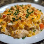 This Million Dollar Chicken Casserole is pure cozy comfort in a pan tender shredded chicken in a rich, creamy sauce, studded with veggies and crowned with a buttery cracker and cheddar topping. It’s easy enough for busy weeknights, yet decadent enough to serve to guests when you want a no-fuss, crowd-pleasing dinner.