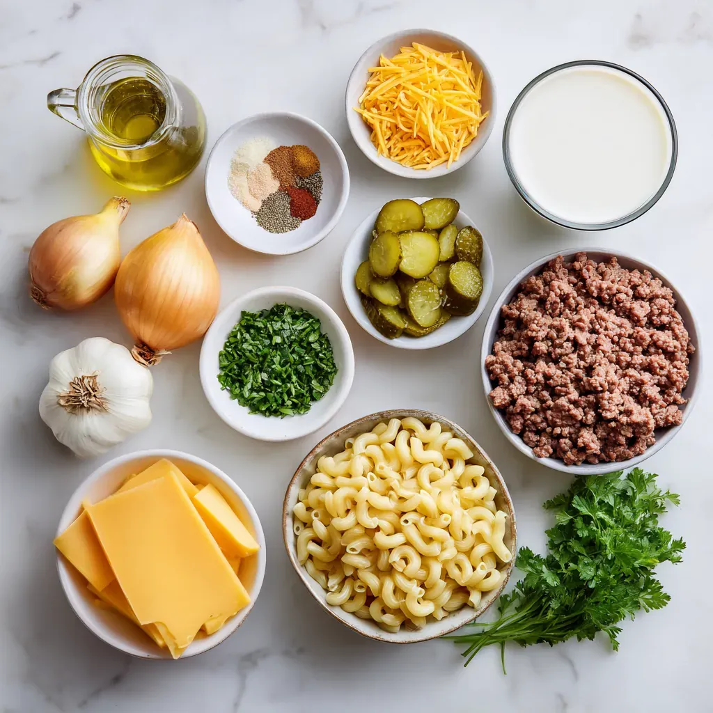 - Spicy Cheeseburger Pasta: Add 1/2–1 teaspoon crushed red pepper flakes or a diced jalapeño with the onions, and use pepper jack cheese for extra heat.