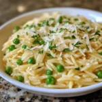 This One-Pot Orzo with Peas and Parmesan is a cozy, weeknight-friendly dish that comes together in under 30 minutes. Tender orzo simmers in savory vegetable broth, then gets tossed with sweet peas and a generous handful of Parmesan for a creamy, risotto-like texture without the constant stirring. It’s simple, satisfying, and perfect for busy days.
