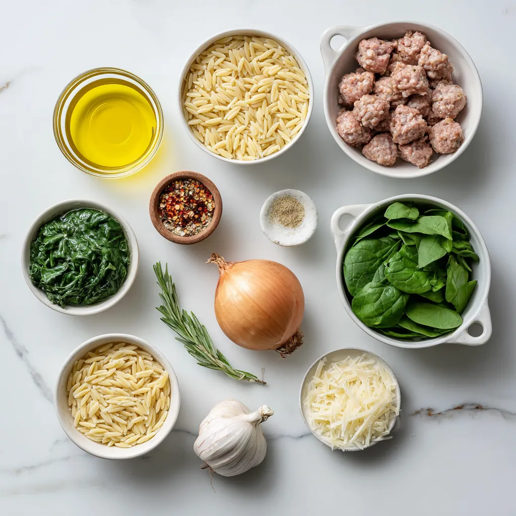 This Orzo with Italian Sausage and Spinach is everything you want in a weeknight dinner hearty, flavorful, and on the table in about 25 minutes. Savory sausage, tender pasta, and fresh greens come together in a single comforting skillet. Keep it as-is for a cozy meal, or customize with your favorite veggies and spice level.