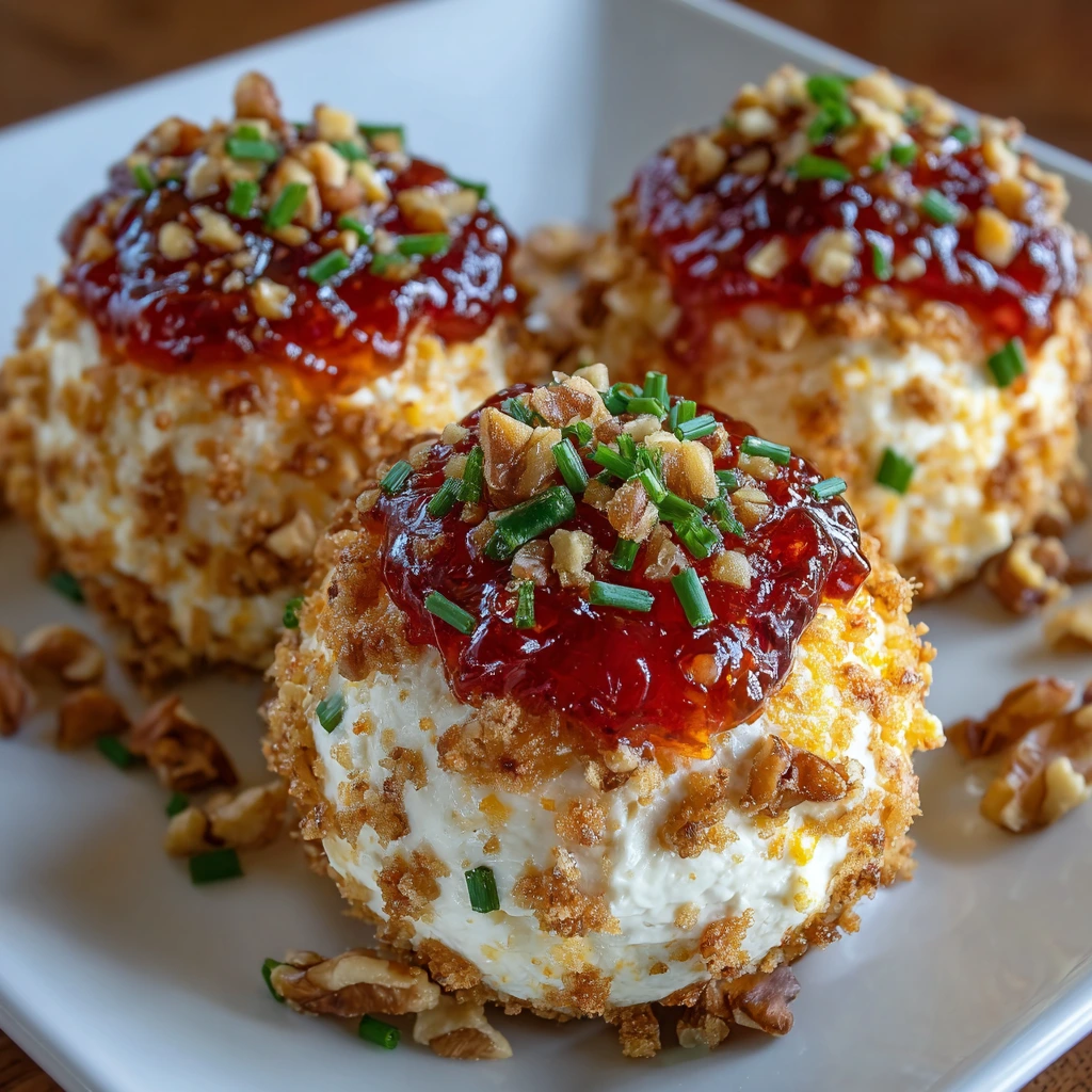- Transfer the cheese balls to a serving platter and drizzle generously with sweet and spicy pepper jelly.
