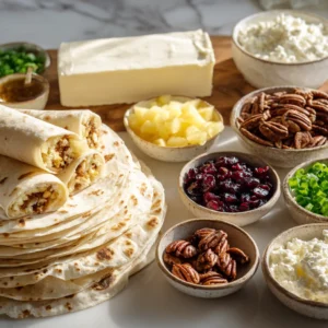 These Pineapple Cranberry Cream Cheese Party Pinwheels are a vibrant, refreshing, and wonderfully simple appetizer that fits beautifully into any celebration. With their creamy filling, tropical sweetness, and pop of tart cranberry, they’re guaranteed to disappear quickly from any platter. Whip up a batch, chill, slice, and watch your guests fall in love with every colorful swirl!