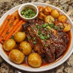 This Savory Korean Gochujang Pot Roast brings a deliciously bold twist to a comforting classic. Slow-cooked until perfectly tender, the beef is infused with a rich gochujang glaze that’s spicy, slightly sweet, and deeply flavorful. With tender potatoes and carrots soaking up every drop of the sauce, this dish is the ultimate cozy meal that’s as impressive as it is easy to make.