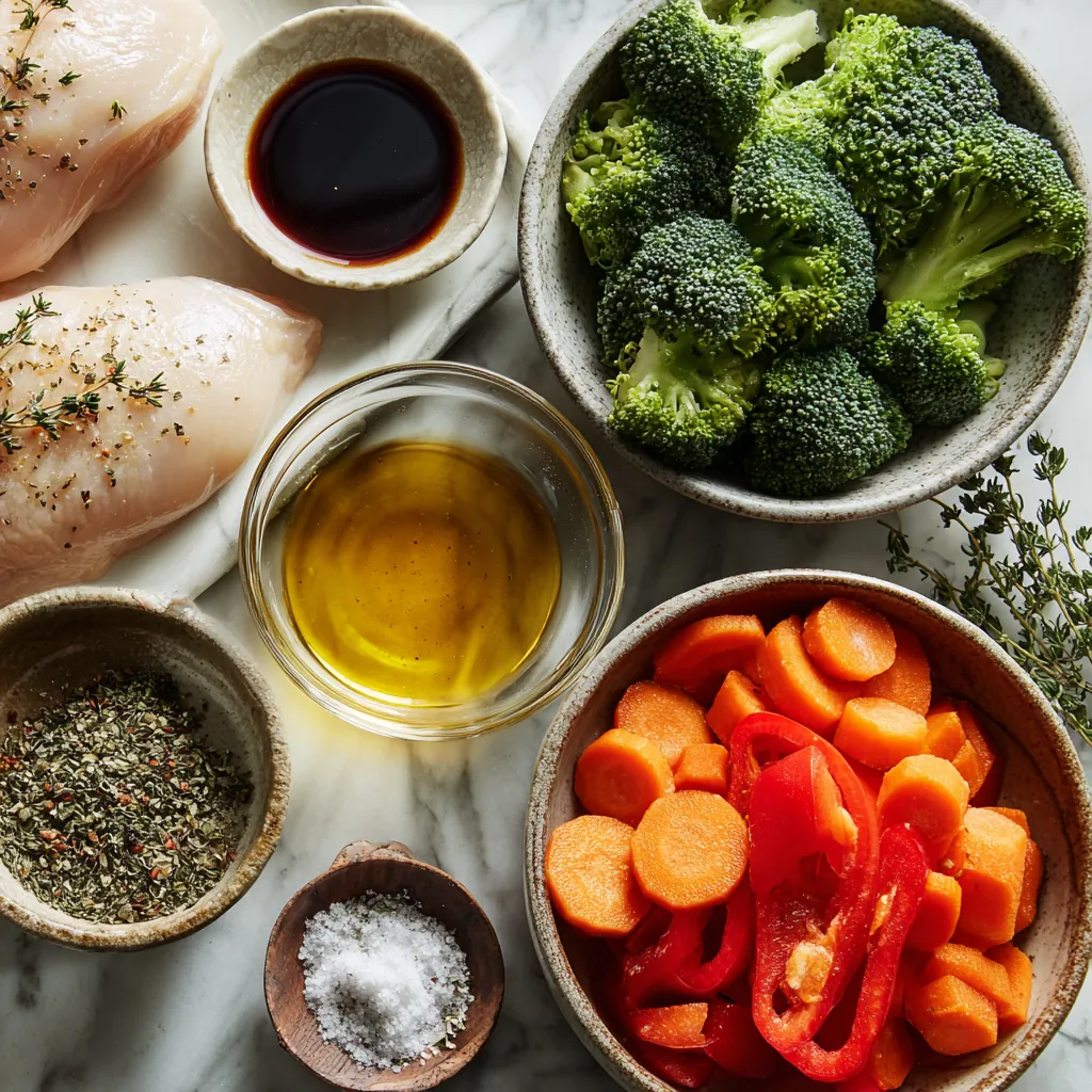 - Bake for 25–30 minutes, or until the chicken is cooked through and reaches an internal temperature of 165°F (75°C), and the vegetables are tender and lightly caramelized at the edges.