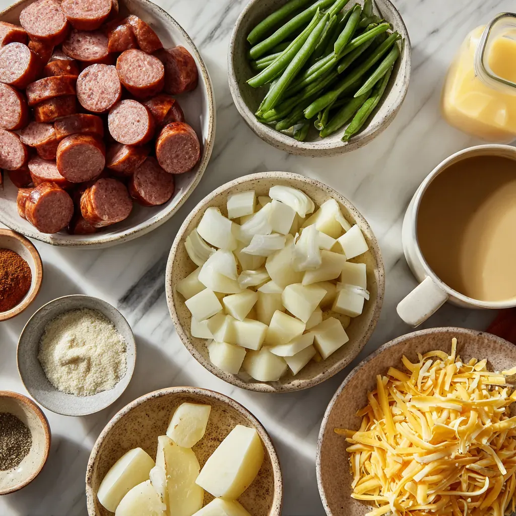 This Slow Cooker Sausage and Potato Casserole is the definition of cozy comfort food. Smoky sausage, tender potatoes, and green beans simmer low and slow in a creamy, savory sauce, then get finished with a blanket of melted cheddar. It’s hearty, budget-friendly, and wonderfully hands-off perfect for busy days, chilly nights, or feeding a hungry crowd with minimal effort.