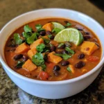 This Hearty Sweet Potato and Black Bean Soup is cozy, nourishing, and full of warm spices. Creamy sweet potatoes simmer with black beans, tomatoes, and smoky paprika for a satisfying bowl that’s perfect for a chilly night. It’s simple to make, naturally vegetarian, and great for meal prep or an easy weeknight dinner.